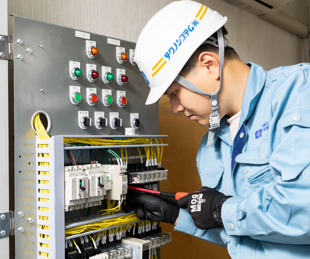 現在の目標は、電気工事士第一種の資格を取得することです。資格を持つことで、より幅広い施工を担当できるようになり、自己成長の大きなステップとなると考えています。また、今後は2000万円規模の大きな施工を一人で担当できるようになることも目指しています。テクノシステムには、先輩方がしっかりとサポートしてくれる環境があり、自分のペースで成長していけるのが強みです。さらに、技術だけでなく、現場での経験を通して、問題解決能力や提案力も磨いていきたいと思っています。これからも成長を続けながら、会社に貢献していける存在になれるよう努力していきます。