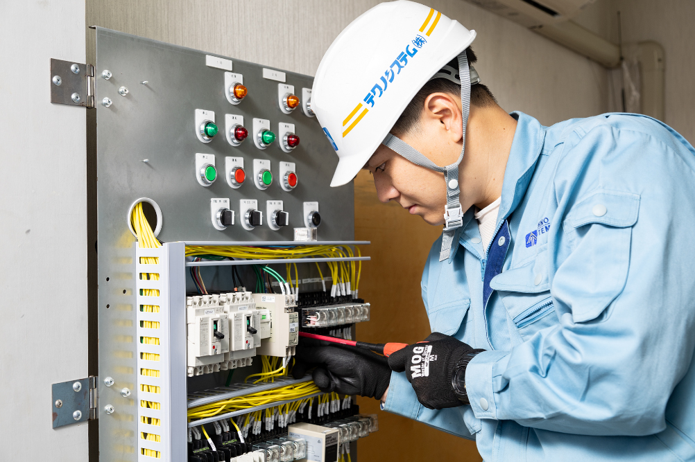 現在の目標は、電気工事士第一種の資格を取得することです。資格を持つことで、より幅広い施工を担当できるようになり、自己成長の大きなステップとなると考えています。また、今後は2000万円規模の大きな施工を一人で担当できるようになることも目指しています。テクノシステムには、先輩方がしっかりとサポートしてくれる環境があり、自分のペースで成長していけるのが強みです。さらに、技術だけでなく、現場での経験を通して、問題解決能力や提案力も磨いていきたいと思っています。これからも成長を続けながら、会社に貢献していける存在になれるよう努力していきます。