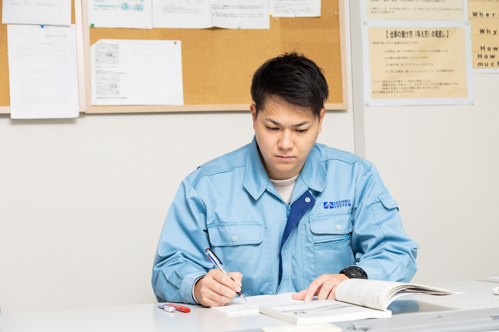 テクノシステムは、未経験でもやる気さえあればしっかりと評価される会社です。私自身、全くの未経験からスタートしましたが、上司や先輩方が丁寧に指導してくださり、資格取得のための支援も受けられる環境が整っています。また、やる気や取り組む姿勢がしっかりと評価され、昇給やボーナスにも反映されるため、モチベーションを保ちながら成長できます。さらに、インフラに関わる仕事は安定しており、将来性もあります。家族との時間も大切にできる働きやすい環境が整っているため、安心して長く働くことができる会社だと思います。