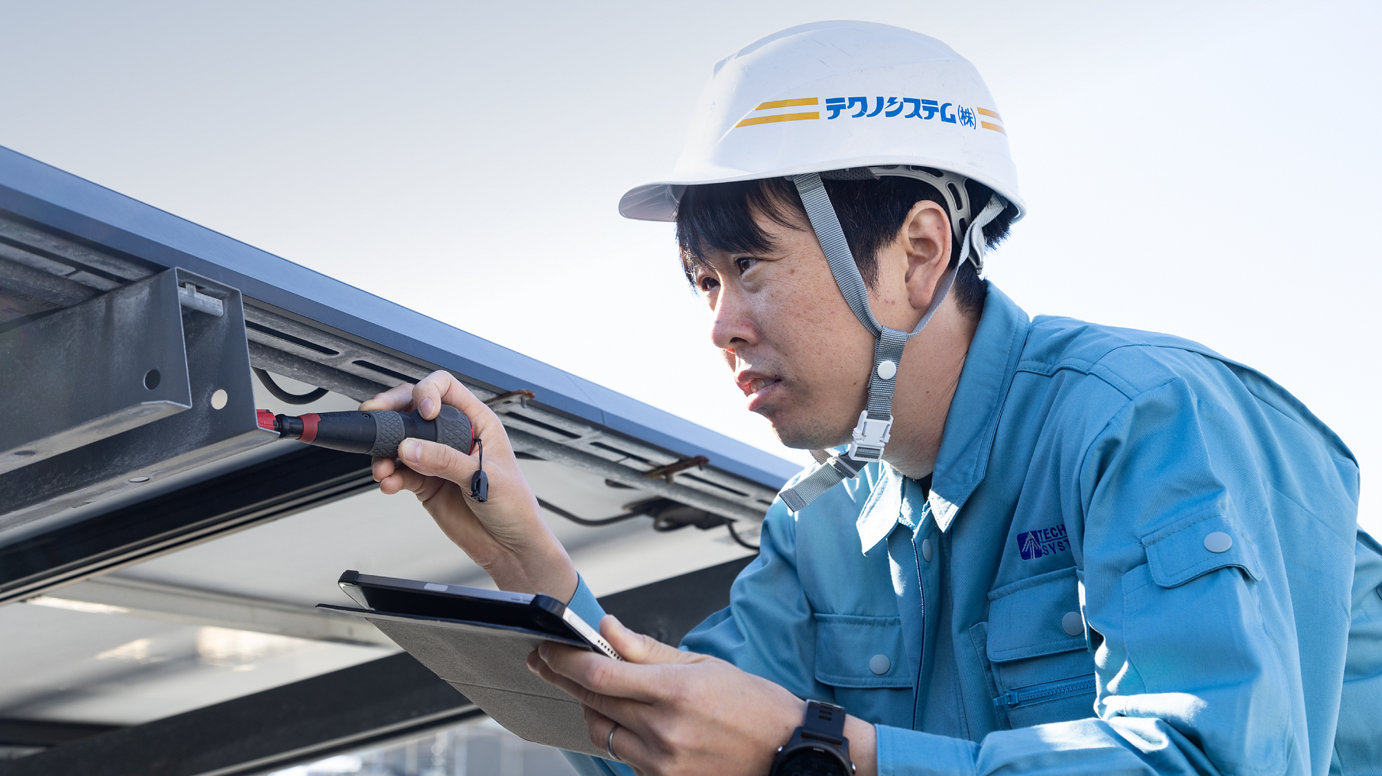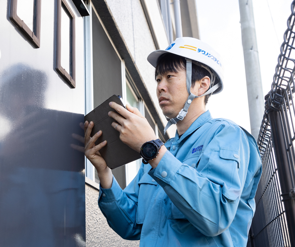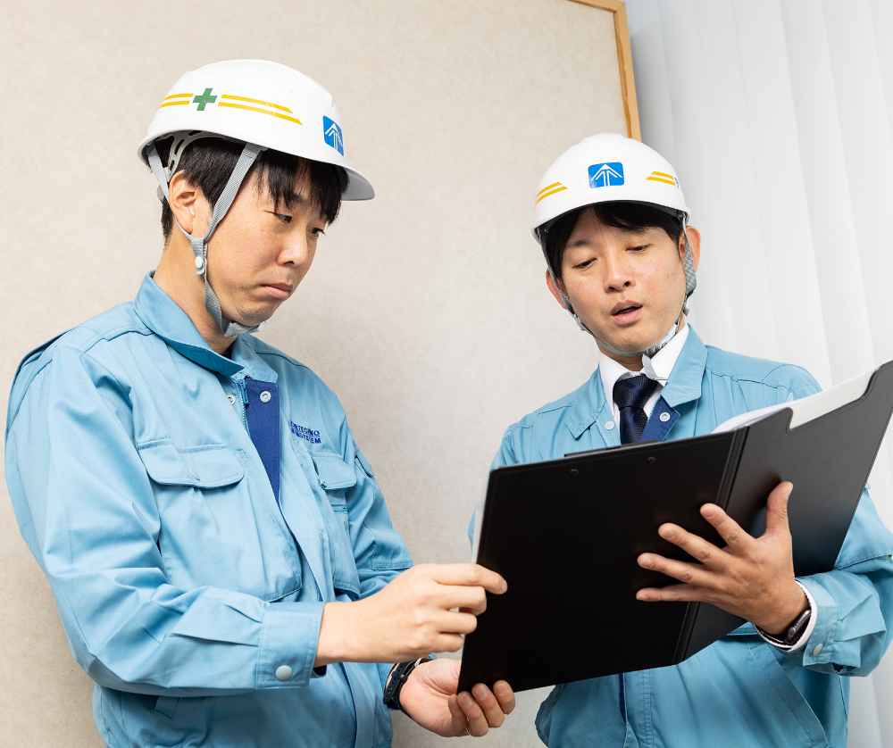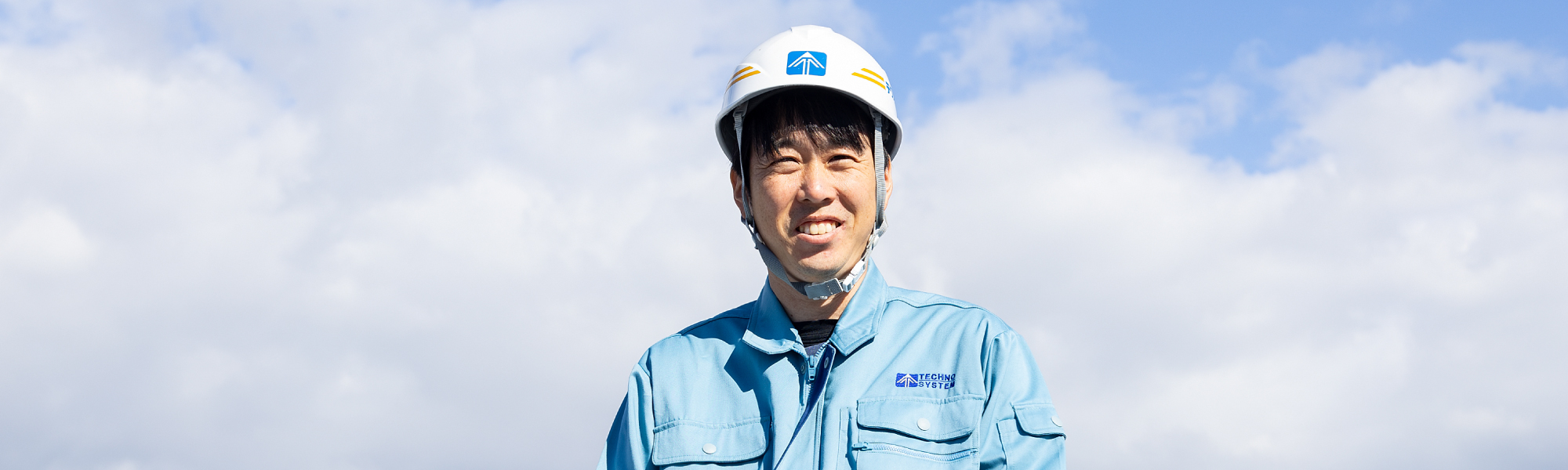 前職は全く異なる分野の工場勤務で、電気工事とは無関係の業務をしていました。そんな中、高校時代の進路指導の先生から連絡をもらい、テクノシステムを紹介されました。先生から紹介されたことで安心感がありましたが、電気工事未経験ということで、正直なところ不安も大きかったです。しかし、面接の際に社長から、未経験でもしっかりとした教育体制が整っていることや、1人で現場に行かせることはないという説明を受け、安心して入社を決めました。現在は上下水道施設の電気工事や計装工事を担当しており、現場での施工や保守作業に加え、設計やシステムの導入にも関わるようになりました。毎日、実際の現場で技術を磨きながら、チームで連携して安全で確実な業務を行うことを心がけています。