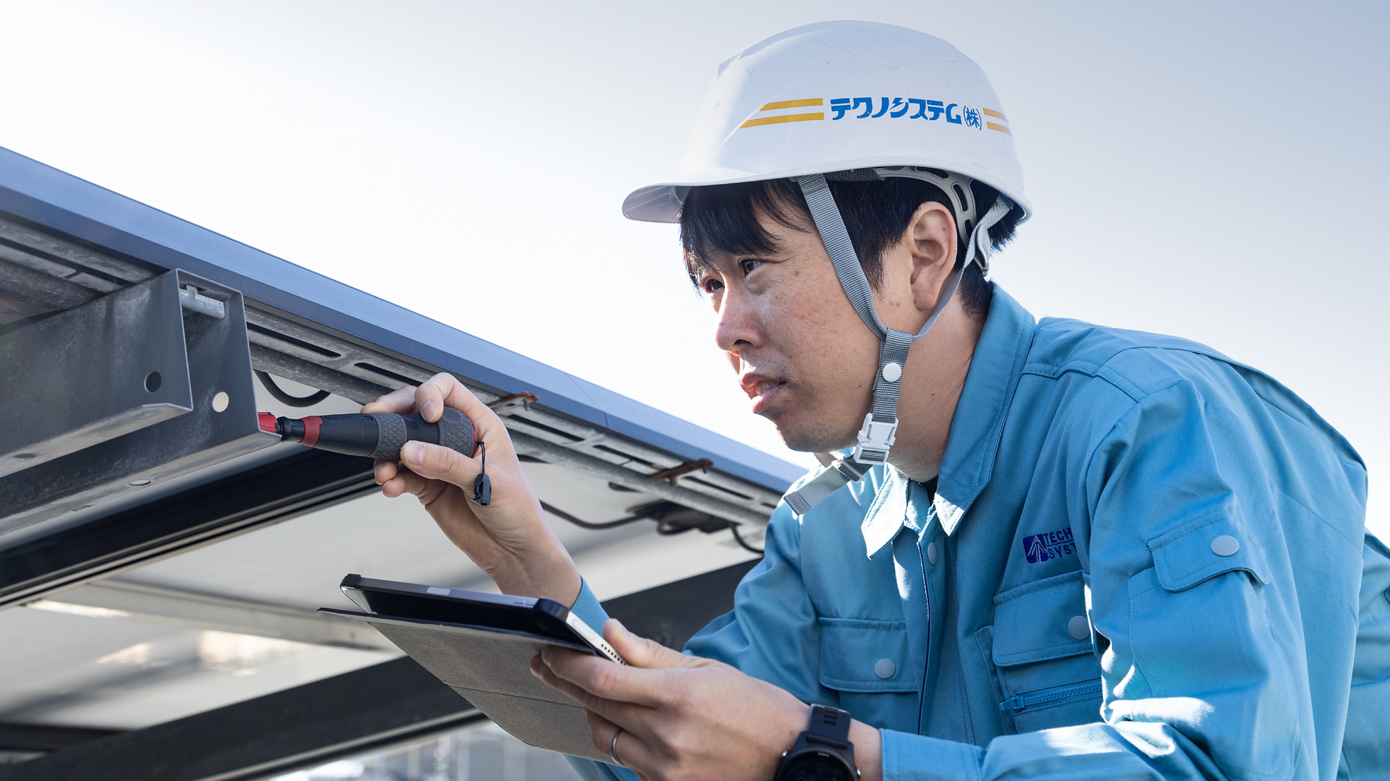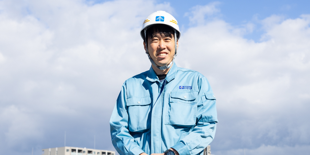 前職は全く異なる分野の工場勤務で、電気工事とは無関係の業務をしていました。そんな中、高校時代の進路指導の先生から連絡をもらい、テクノシステムを紹介されました。先生から紹介されたことで安心感がありましたが、電気工事未経験ということで、正直なところ不安も大きかったです。しかし、面接の際に社長から、未経験でもしっかりとした教育体制が整っていることや、1人で現場に行かせることはないという説明を受け、安心して入社を決めました。現在は上下水道施設の電気工事や計装工事を担当しており、現場での施工や保守作業に加え、設計やシステムの導入にも関わるようになりました。毎日、実際の現場で技術を磨きながら、チームで連携して安全で確実な業務を行うことを心がけています。